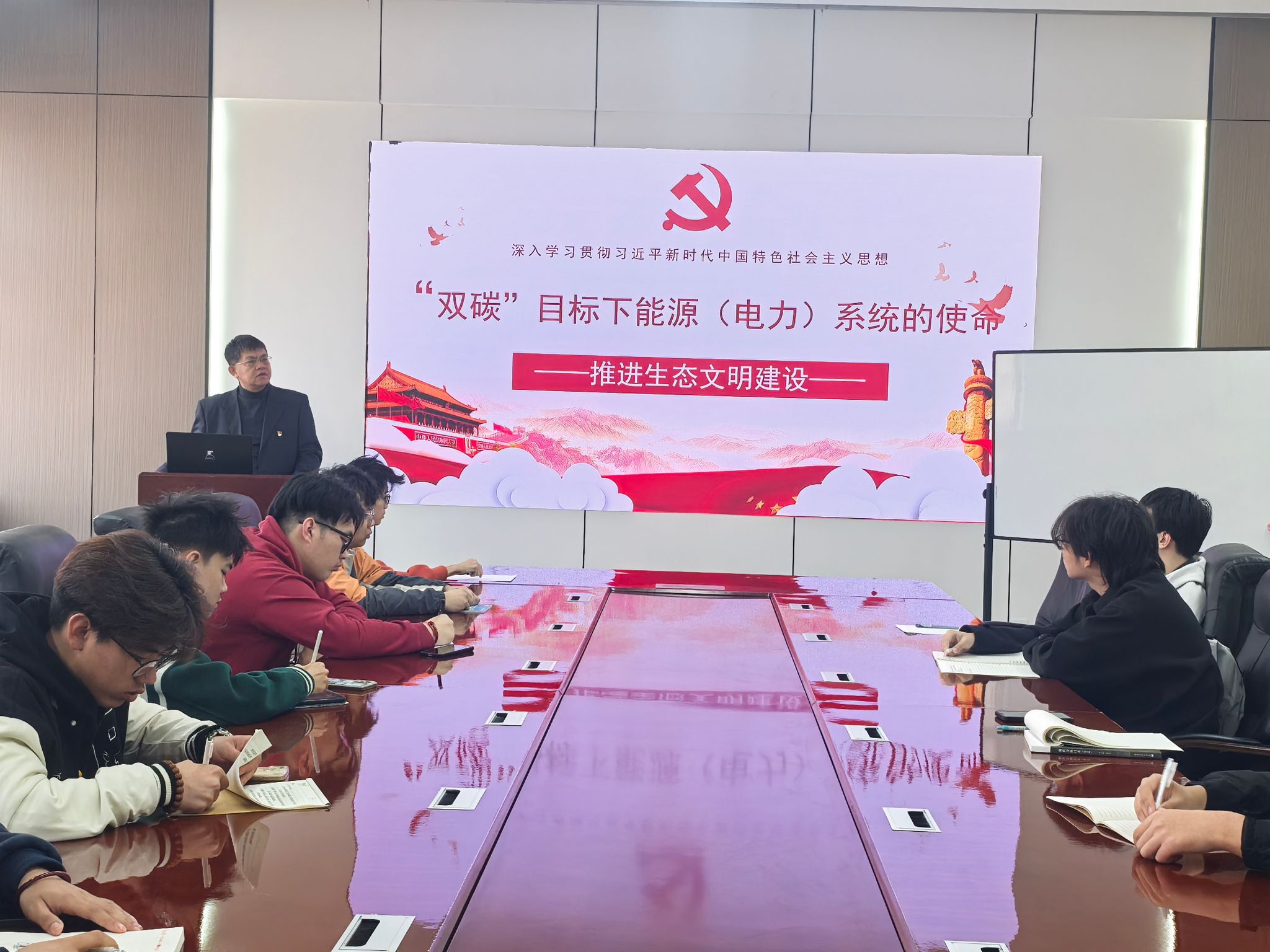 课程中,尹常永院长结合生动的事例以及自身学习、工作经历,勉励新时代大学生肩负“双碳”目标下能源电力的责任与担当,要不断学习与“双碳”有关的知识,正确把握“双碳”目标,提高自身生态责任认知;准确理解“双碳”战略,深化自身生态责任情感;积极践行“双碳”行动,养成良好生态行为习惯;利用所学专业知识,积极参与新能源技术的研发和创新,积极投身“双碳”科技创新,为我国能源转型贡献力量。