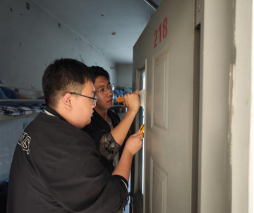 为秉持着“彻底清、全覆盖、广参与、常态化”的原则,赵老师带领学生干部、寝室长,将宿舍卫生彻底清扫,做到室内干净整洁无异味,门窗干净无杂物,地面无污渍、无纸屑,个人物品摆放整齐。同时,逐一对寝室安全隐患进行排查,消除安全隐患,为我院学生宿舍筑起一道无坚不摧的安全“防火墙”。