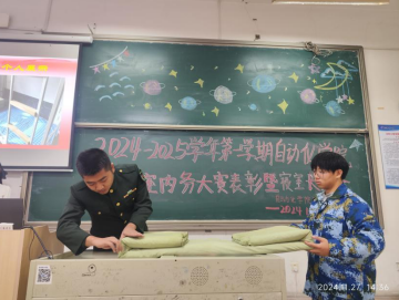 退伍士兵和优秀新生代表展示了优秀寝室内务的示例指导,为同学们树立榜样。激励同学们向榜样学习,争做内务优秀个人。