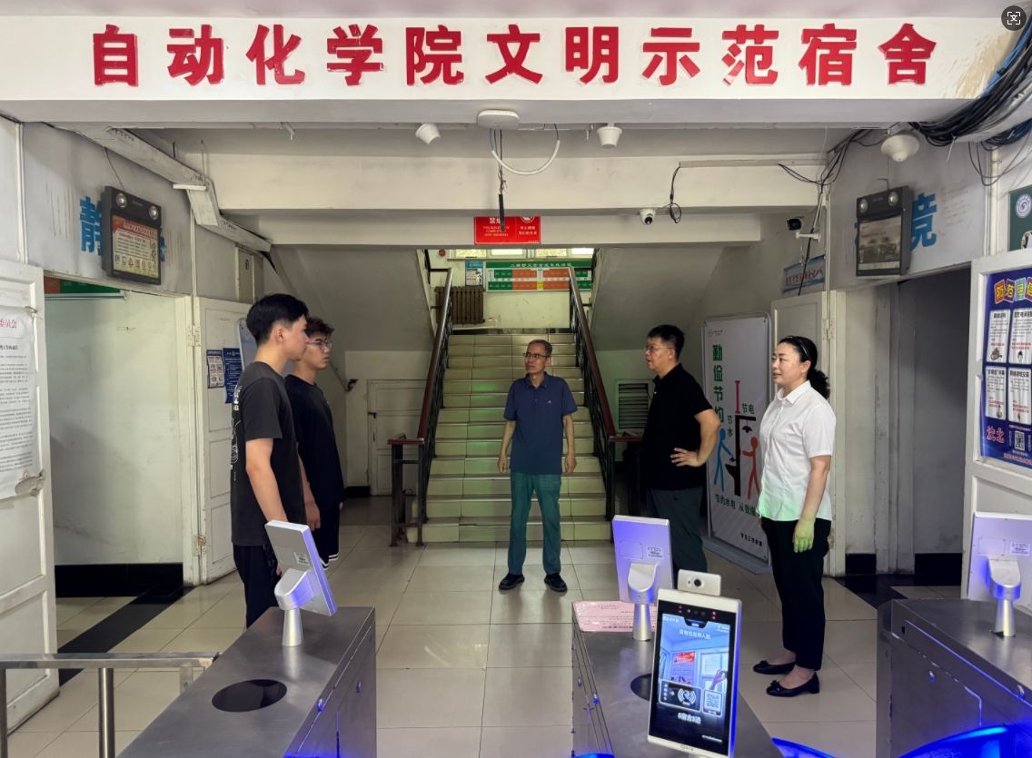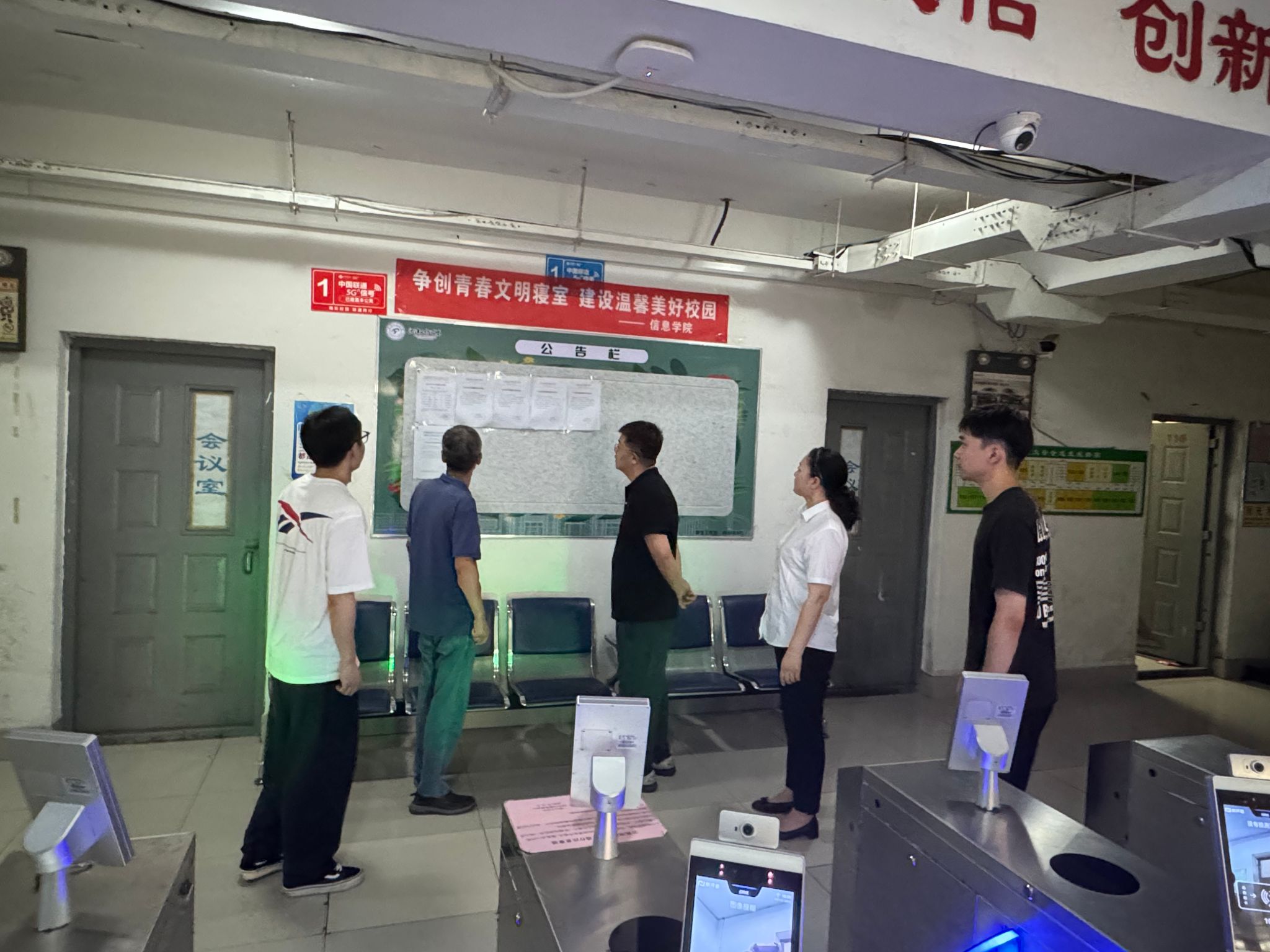 学院领导一行重点察看了学生宿舍的卫生状况、用电安全、消防设施及物品摆放等情况。检查过程中,领导们与同学们亲切交流,了解他们的学习生活近况,并反复叮嘱大家要高度重视宿舍安全,严格遵守学校宿舍管理规定,注意防火、防盗,离校前务必关好门窗、切断电源,妥善保管贵重物品。从检查结果看,大部分学生宿舍安全卫生状况良好。