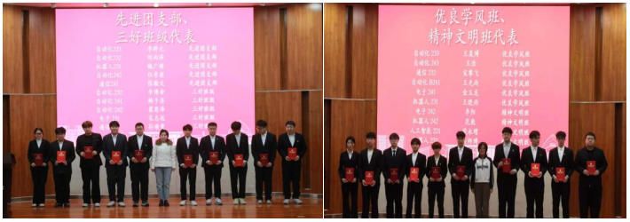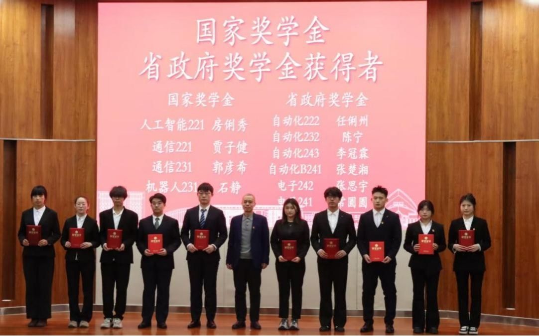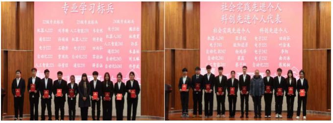 学院各位老师分别为获奖个人、集体颁奖。此次表彰涵盖多类荣誉:国家级与省级奖学金、“专业学习标兵”“优秀团员”“优秀团干部” 等专业与团学荣誉,“暑期社会实践先进个人”“科创先进个人” 等实践与科创类表彰,以及 “寝室优秀个人”“三好学生”“优秀学生干部” 等生活与个人荣誉;此外,自动化 232 班等 5 个班级获 “三好班级” 称号,电子 242 班等 4 个班级获 “精神文明班” 称号,机器人 231 班等 6 个班级获 “优秀学风班” 称号,全面肯定了师生在学风建设、集体发展等方面的突出成效。