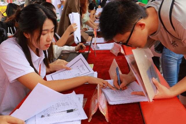 现场设立的迎新服务站前,工作人员们保持着高度的专业素养和热情的笑容,耐心解答新生各类问题,引导新生们顺利完成各项入学手续。一旁,刚刚完成报到的新生们兴奋地交谈合影,充满了对未来的大学生活的期待。