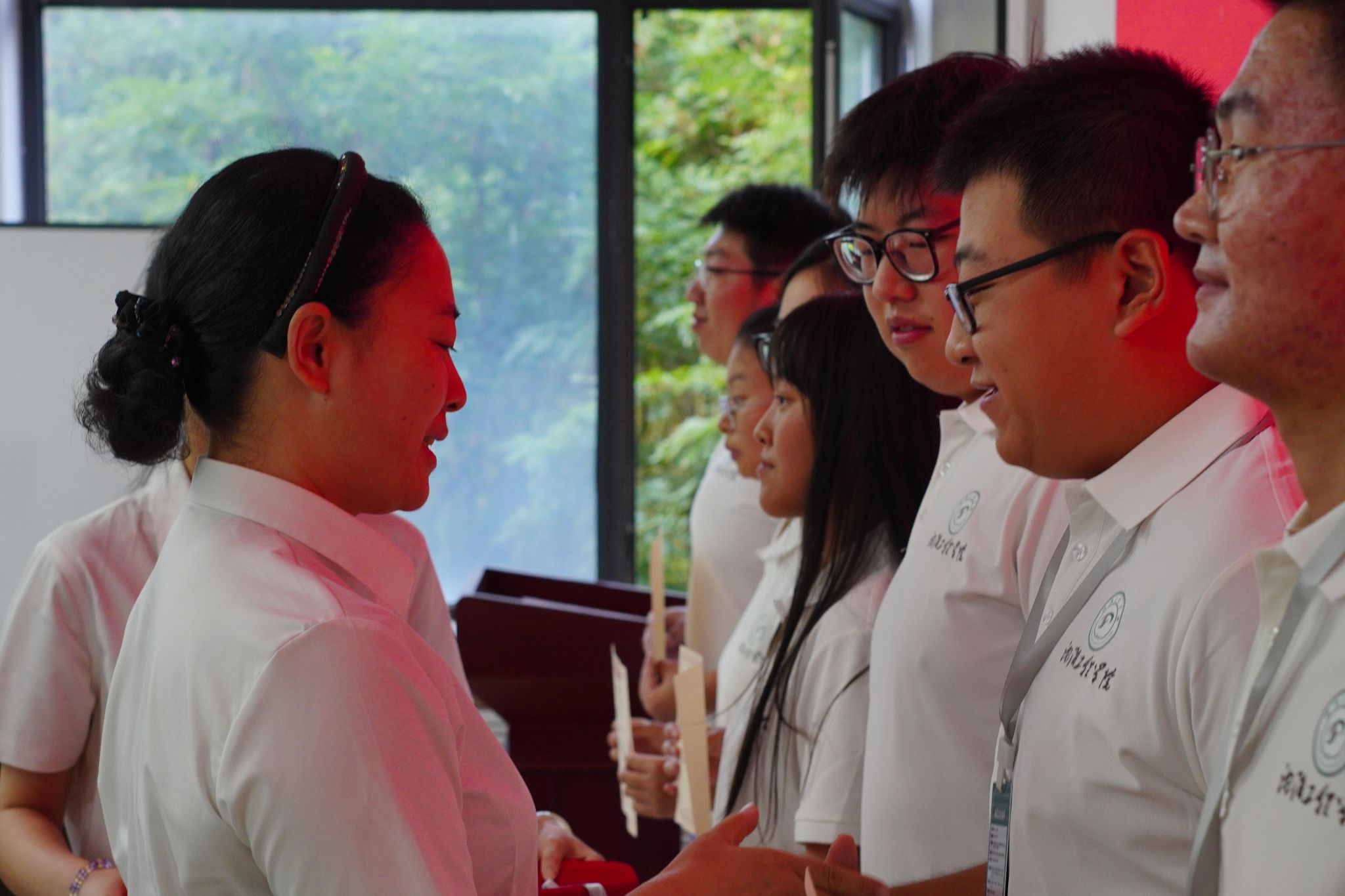 会议在热烈的掌声中开始,现场庄严又温暖。新生班辅导员杨乘一老师率先发言,他用充满激情的话语承诺,将全力以赴做好万全准备,确保新生享受贴心、顺畅的入学体验。其后,导生代表、学生会主席团成员贾子健宣读了2025级班导生名单。随后举行的聘任仪式上,新生班辅导员老师为导生们颁发了聘书和专属服装,象征着这支骨干队伍正式亮相,肩负起新身份赋予的责任。