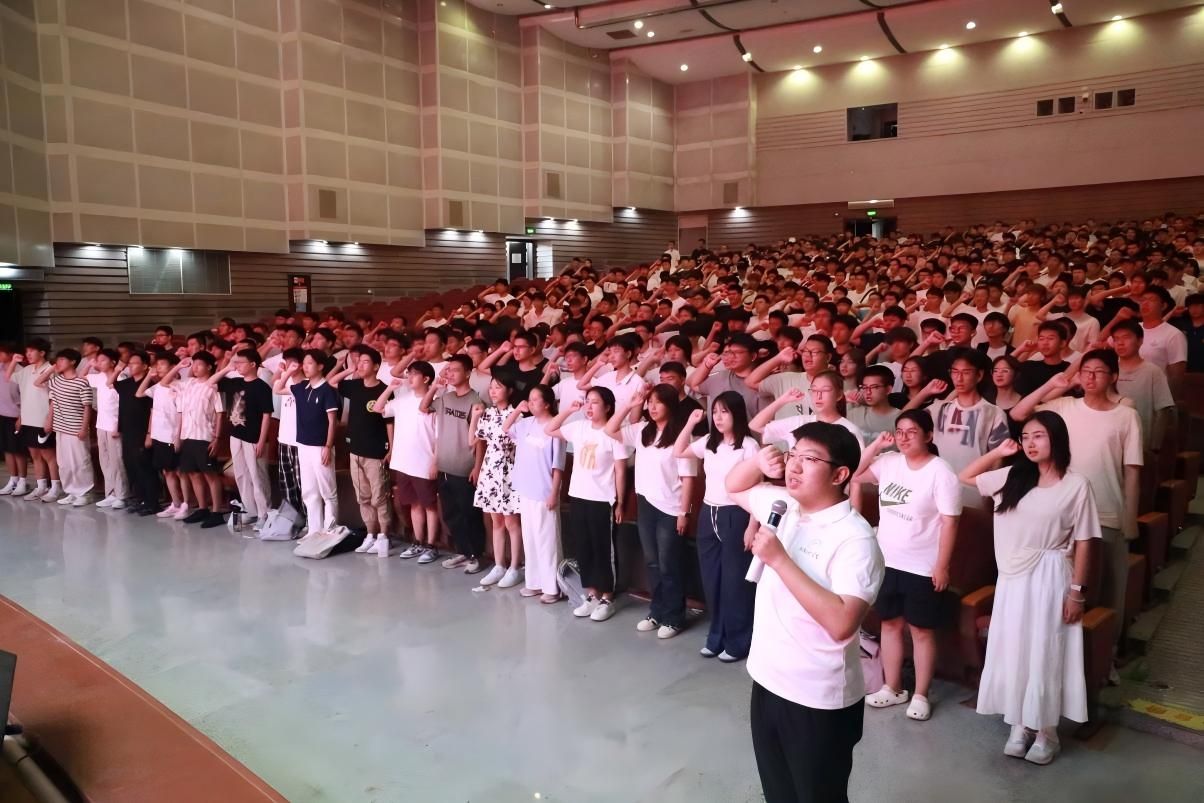 自动化232班刘雨泽作为领誓人带领全体新生发出青春誓言,典礼氛围走向高潮。全体新生高举右拳、庄严宣誓,句句铿锵、目光如炬,以青春誓言许下对大学生活的责任与梦想,展现出自动化新人昂扬奋发的精神面貌。