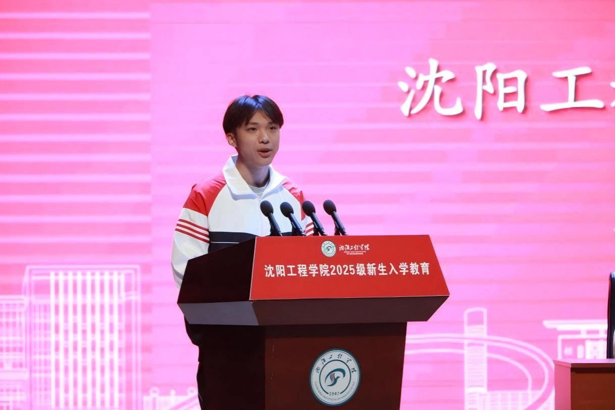 新生代表机器人252班邹谛杭代表全体新生发言,他的发言清澈而坚定,一字一句洋溢着对未来的期待。他表示将珍惜大学时光,尽快适应节奏、融入集体,以踏实努力书写无愧于心的青春答卷。