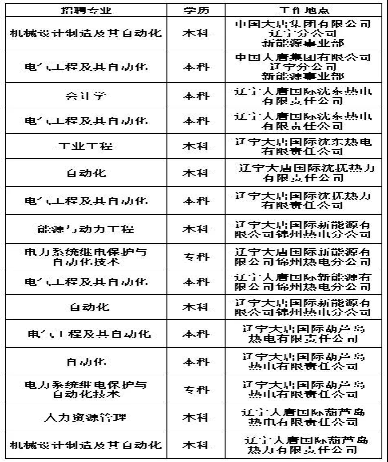 六、其他事项(一)应聘者填写的毕业院校、学历层次、专业信息应与教育部学籍在线验证一致,且对填写信息的完整性、准确性负责。凡出现弄虚作假、欺报瞒报的,不予录取;已经录取的公司有权予以解聘。(二)本次招聘公告解释权归中国大唐集团有限公司辽宁分公司。