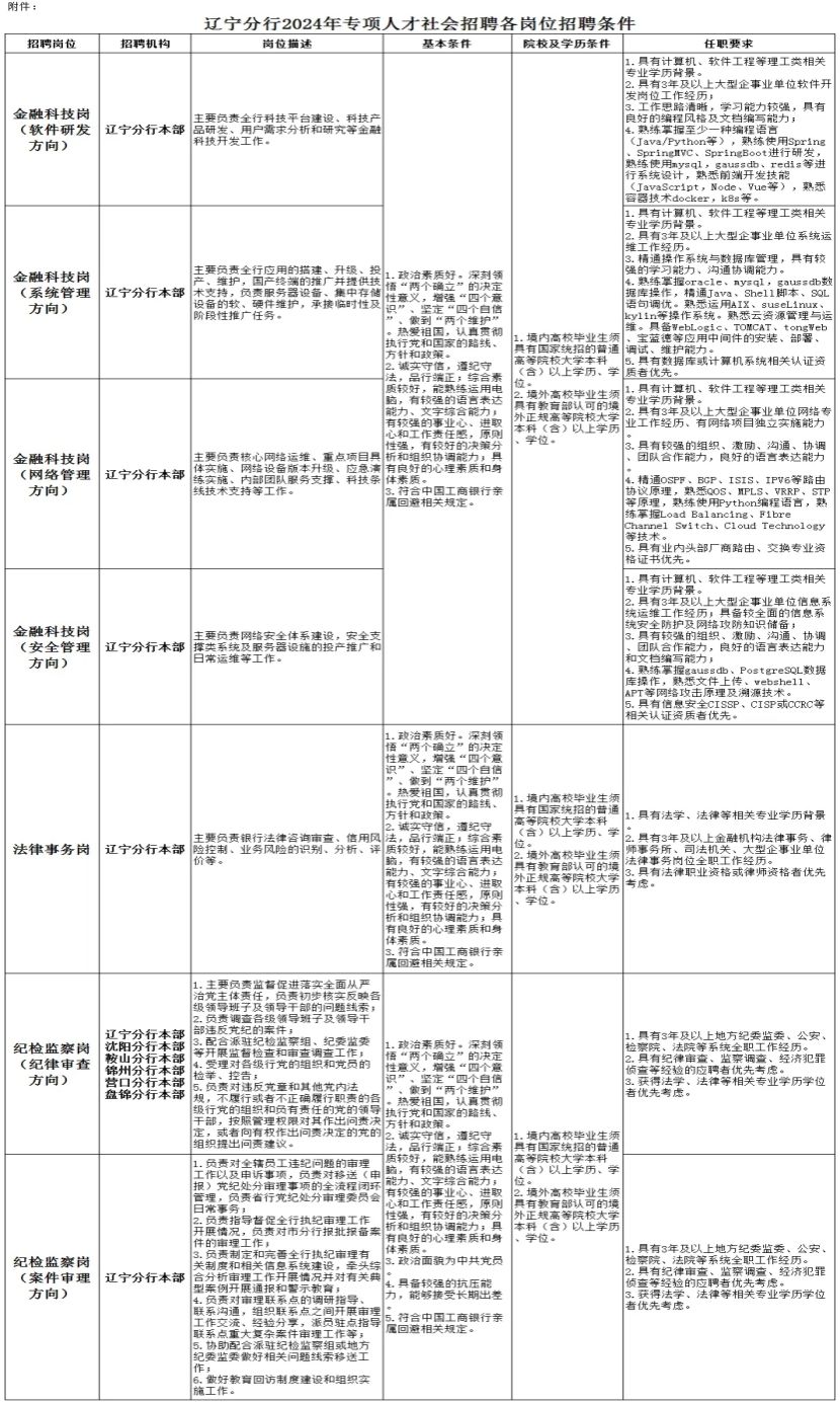 附件:辽宁分行2024年专项人才社会招聘各岗位招聘条件(见下图)