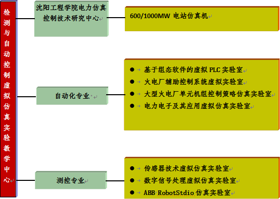 中心筹建于2011年,背景是学校开展了“虚拟实验室开发与建设”、“教学资源库建设与应用”专项研究项目立项工作,为此伟德betvlctor1946成立了虚拟仿真实验项目开发团队,自行开发了“基于组态软件PLC虚拟仿真”等虚拟实验项目,同时利用专业建设和中央与地方共建实验室资金,建立或在建伟德betvlctor1946火电厂辅助控制系统虚拟实验、大型火电厂单元机组控制策略仿真实验、电力电子及其应用虚拟仿真实验室、火力发电厂水处理与运行虚拟仿真实验、传感器技术虚拟仿真实验、数字信号处理虚拟仿真实验、ABB RobotStdio仿真实验等多个虚拟实验项目。通过几年的建设,目前开设虚拟仿真实验的理论课程8门,实训类课程2门,相关的实验教师共38名。拟成立的检测与自动控制虚拟仿真实验教学中心结构的如图2所示。