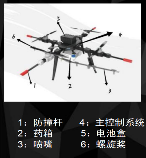 本产品以图像识别YOLOv7算法为基础,开发出农作物图像识别系统,实现对农作物的精准喷药;利用物理学理论,系统添加了气动分析,利用螺旋桨风产生风下压让作物六七十度摇摆,从而露出上、中、根部,达到均匀受药的效果;在机械结构方面,添加了防撞杆的设计,在螺旋桨的前方设计防撞杆,该杆采用航空铝材质,发生意外时可以保护螺旋桨;自解体的设计,发生意外时电池盒、药箱、喷洒架自动解体脱落分解外力,整个系统自动断电,不会机体造成损伤。